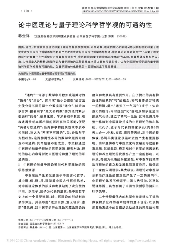 经各位科学网博主的提醒,我们在中国知网上以“量子+中医”为关键词进行了搜索,结果打开了新世界的大门……
